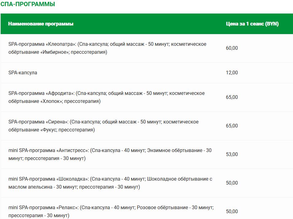 Прейскурант цен на платные медицинские услуги в санатории «Солнечный»