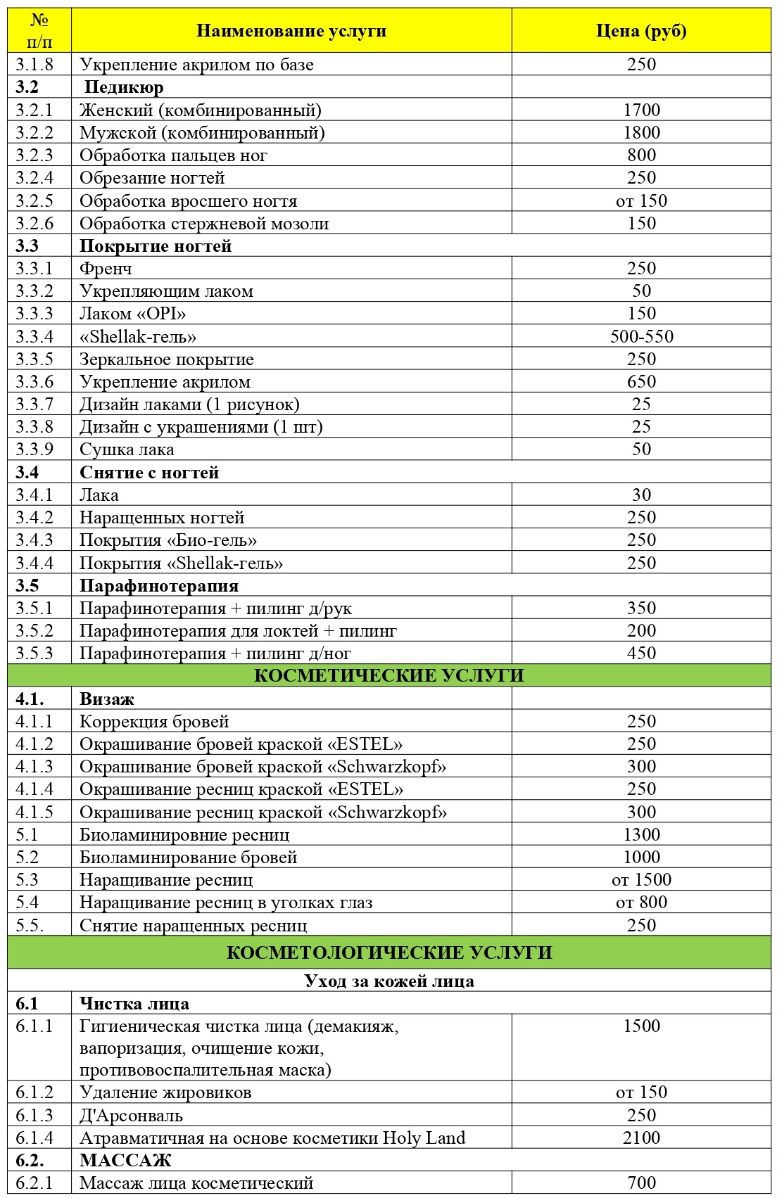 Цены на косметологические процедуры в санатории «Сосновый Бор» Казани